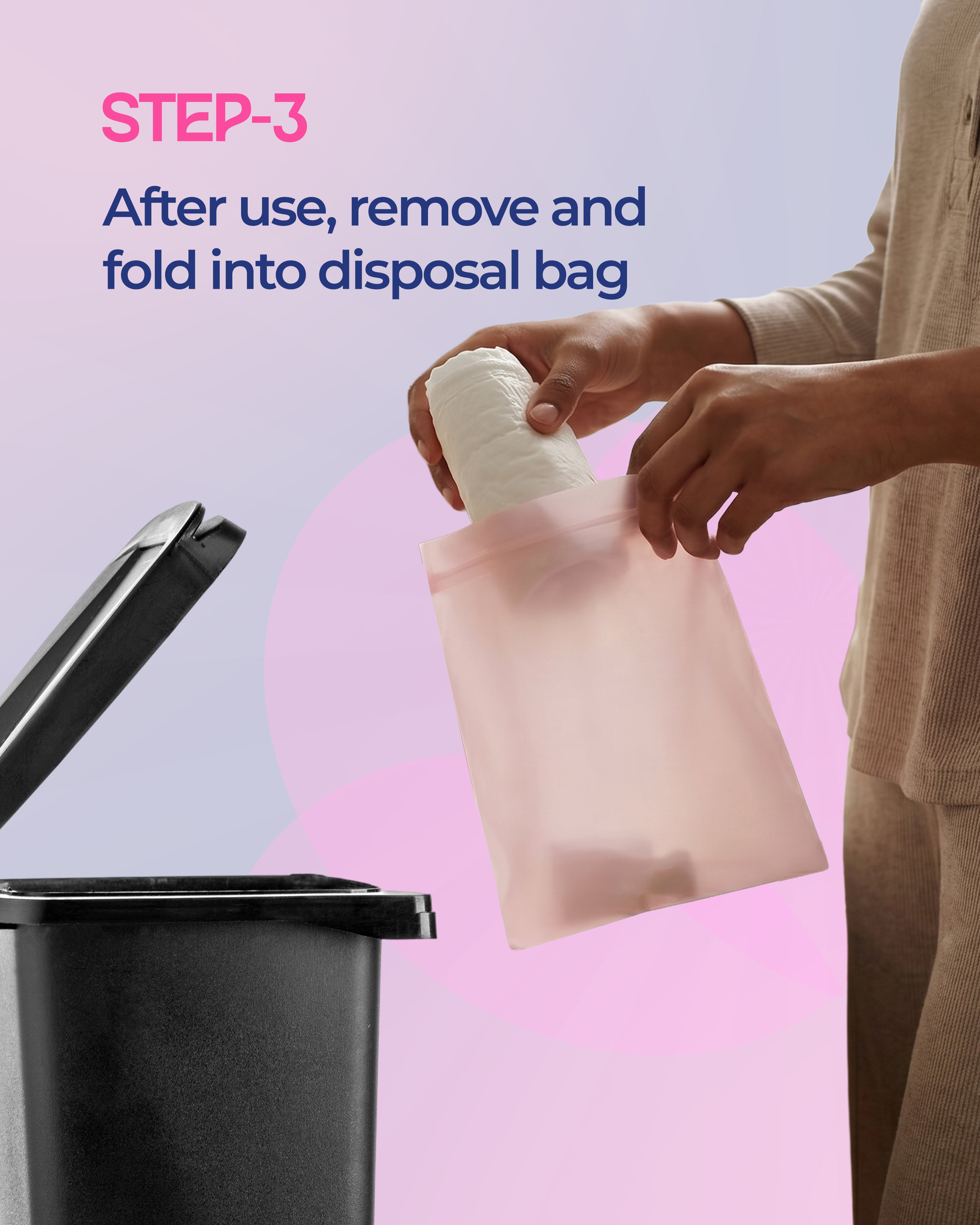 Tear open the pack and slide on the Healthfab Disposable Period Panty just like regular underwear. Soft, breathable fabric that feels comfortable from the very first wear — no adjustment, no fuss.