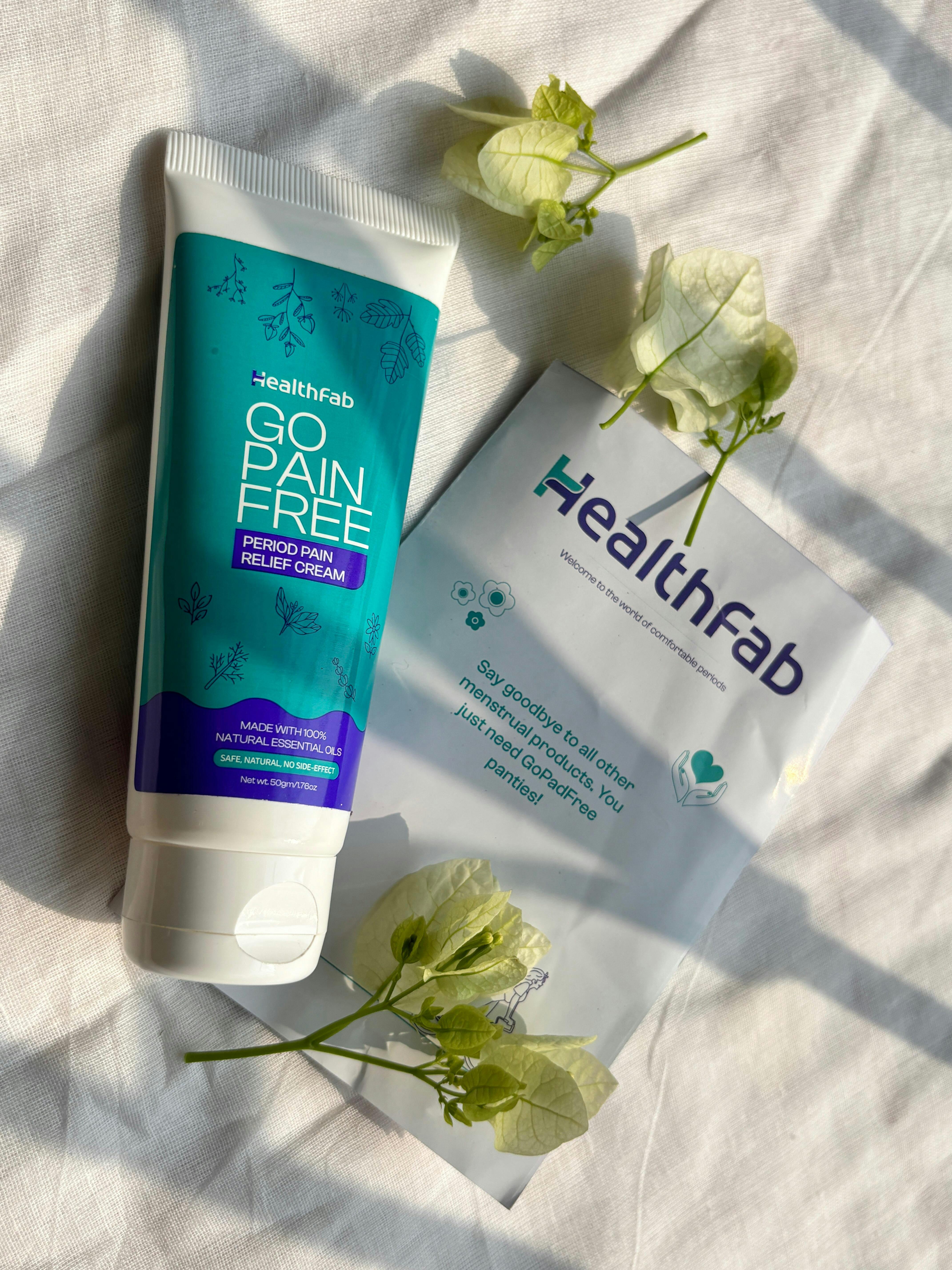 Healthfab® GoPainFree के साथ, आप मासिक धर्म के दौरान होने वाली ऐंठन की निरंतर पीड़ा को अलविदा कह सकते हैं। हमारी विशेष रूप से विकसित क्रीम मासिक धर्म के दौरान होने वाली ऐंठन के प्रभावी उपचार के लिए आपका सबसे अच्छा समाधान है।